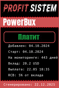 PowerBux - Описание Выплаты Статистика проекта | Хайп мониторинг ProfitSistem | Блог о инвестициях и Хайп проектах | HYIP monitoring