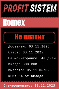 Romex - Описание Выплаты Статистика проекта | Хайп мониторинг ProfitSistem | Блог о инвестициях и Хайп проектах | HYIP monitoring