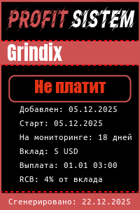 Grindix - Описание Выплаты Статистика проекта | Хайп мониторинг ProfitSistem | Блог о инвестициях и Хайп проектах | HYIP monitoring