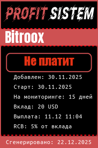 Bitroox - Описание Выплаты Статистика проекта | Хайп мониторинг ProfitSistem | Блог о инвестициях и Хайп проектах | HYIP monitoring