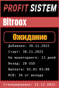 Bitroox - Описание Выплаты Статистика проекта | Хайп мониторинг ProfitSistem | Блог о инвестициях и Хайп проектах | HYIP monitoring