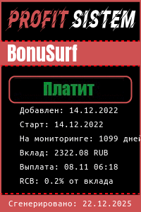 BonuSurf - Описание Выплаты Статистика проекта | Хайп мониторинг ProfitSistem | Блог о инвестициях и Хайп проектах | HYIP monitoring