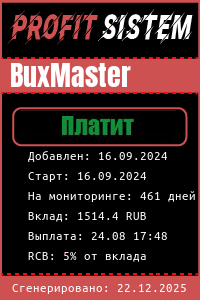 BuxMaster - Описание Выплаты Статистика проекта | Хайп мониторинг ProfitSistem | Блог о инвестициях и Хайп проектах | HYIP monitoring