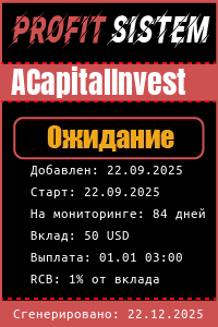 ACapitalInvest - Описание Выплаты Статистика проекта | Хайп мониторинг ProfitSistem | Блог о инвестициях и Хайп проектах | HYIP monitoring